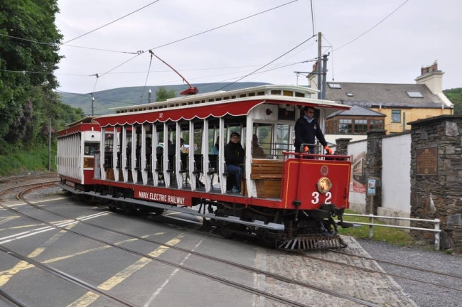 Car No.32 and Trailer No.40 near Laxey Goods Shed with a working from Ramsey on the 4th of June 2016. © Andrew Scarffe