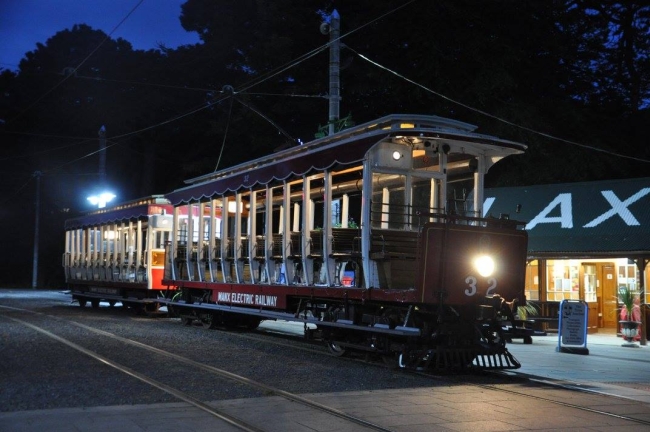 Car No.32 and Trailer No.40 wait time at Laxey with the 22:25 to Derby Castle, on the 4th of June 2016. © Andrew Scarffe