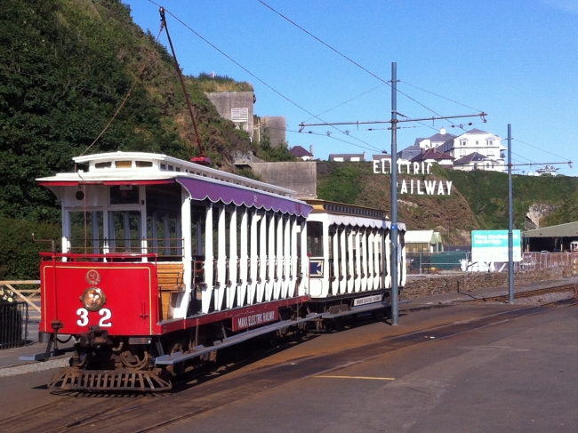 Car No.32 propels Trailer No.48 back to the car sheds after terminating at Derby Castle on the 4th of August 2014. Car No.32 had replaced No.7 at Laxey which had suffered brake problems in the afternoon. © Alex Fairlie
