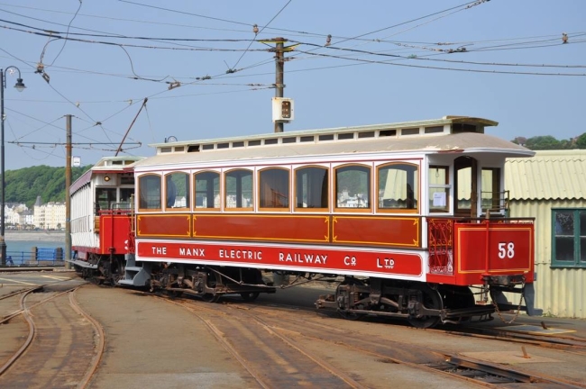 Car No.32 and Trailer No.58 depart the yard for Derby Castle on the 5th of June 2016. At the time Trailer No.58 had temporarily returned to traffic for the TT events., prior to the completion of its overhaul. © Andrew Scarffe