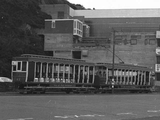 Car No.32 and Trailer No.62 approach Summerland shortly after departure from Derby Castle on the 23rd of August 1978. Both Car and Trailer only carried the ‘Isle of Man Railways’ scheme for the 1978 season, being replaced by Green and White during the Winter. © Colin Clifton