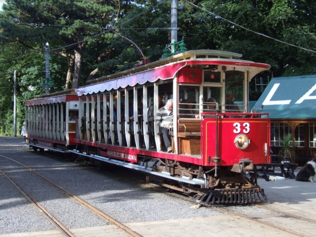 Car No.33 and Trailer No.41 wait to depart south from Laxey with the 17:10 Ramsey-Derby Castle on the 27th of July 2016. © David Hennessey