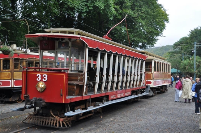 Car No.33 paired with Trailer No.57 on the ‘120th Anniversary Day’, seen here at Laxey .The car had only just returned to traffic the day prior following a seized armature sustained during TT week. © Andrew Scarffe