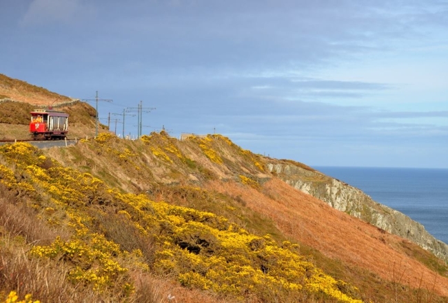 Car No.33 on Permanent Way duties heads over the clifftops at Howstrake on the 20th of March 2015. © Andrew Scarffe