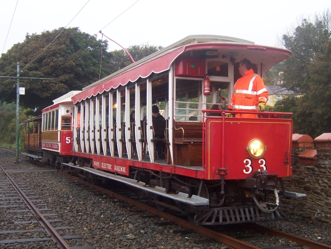 Car No.33 prepares to depart Minorca with Trailers No.59 and No.51 in tow on the 22nd of September 2010, a special event as part of the Manx Heritage Tramway Gathering. © David Martin