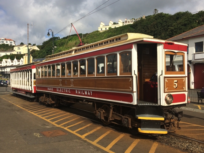 Car No.5 and Trailer No.40 load passengers at Derby Castle while waiting to depart for Ramsey with the 09:40 on the 31st of July 2016. © Alex Fairlie