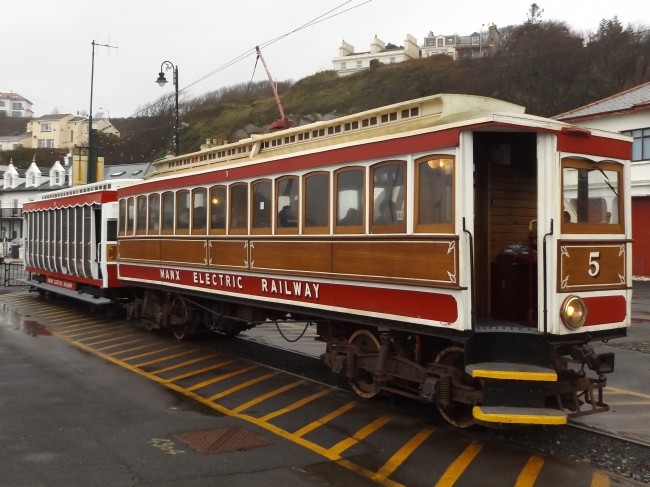 Car No.5 and Trailer No.41 wait to depart Derby Castle with the 09:40 for Ramsey on a very wet 26th of March 2016. © Josh Haworth
