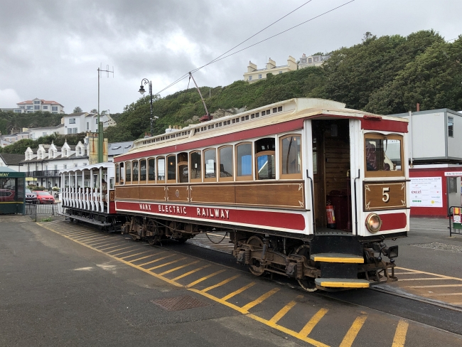 Car No.5 and Trailer No.54 stand waiting to form the 15:40 to Ramsey at Derby Castle on the 27th of July 2019. © Alex Fairlie
