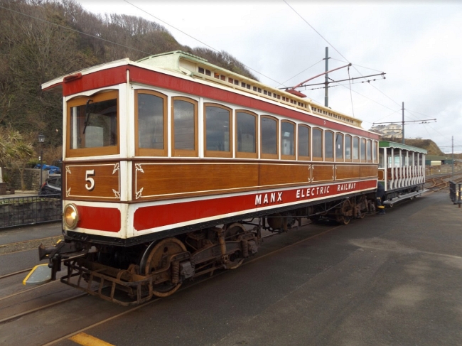 Car No.5 and Trailer No.60 have arrived from Derby Castle Car Sheds and wait to reverse formation and head to Laxey on the 28th of March 2016. This was a empty stock working – Car No.5 was booked to work motorman taster sessions, while Trailer No.60 was for display. © Josh Haworth