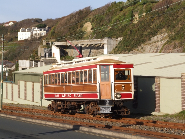 Car No.5 climbs past the shed single-motor with the 09:40 to Ramsey on the 4th of November 2012. © Alex Fairlie