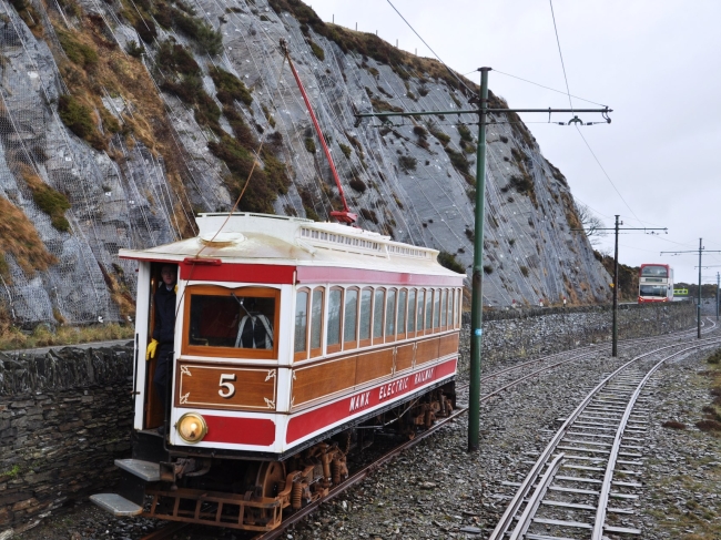 Car No.5, working the 11:10 Derby Castle to Ramsey, nears the summit at Bulgham on a overcast 9th of March 2013. © Andrew Scarffe