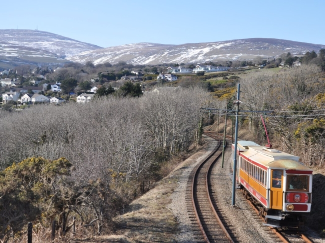 Car No.6 and Trailer No.41 near Bonner Corner working the 1610 Derby Castle to Ramsey on the 1st of April 2013. © Andrew Scarffe