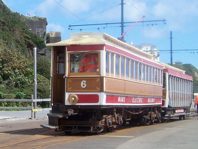 Car No.6 and Trailer No.46 brake to a stand at Derby Castle with a working from the north on the 19th of July 2008. © David Martin