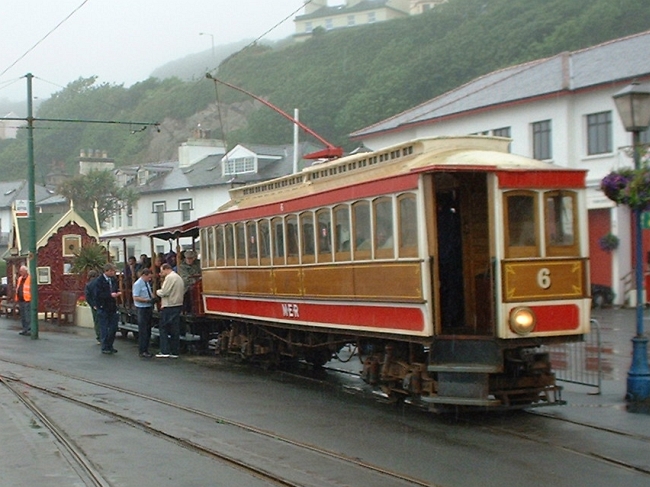 Car No.6 and Trailer No.51 stand in the Groudle Siding at Derby Castle before working a private photo-stop trip to Ramsey and back for the Isle of Man 50 Group on the 29th of July 2002. © David Mee
