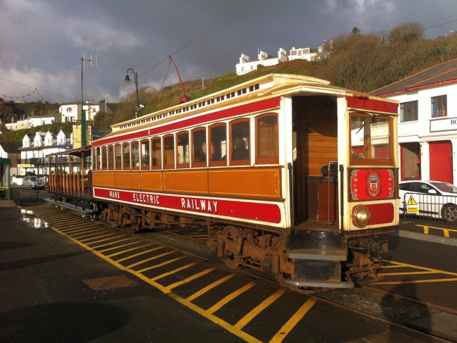 Car No.6 and Trailer No.51 wait to depart Derby Castle with the 09:40 for Ramsey on the 1st of November 2013 – a rare off season outing for Trailer No.51. © Alex Fairlie