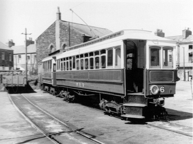 Car No.6 and Trailer No.59 stand in Ramsey station in the company of Wagon No.1 and Van No.14 on the 1st of August 1957. The Car and Trailer were working a full-line special on this day. © Website Collection