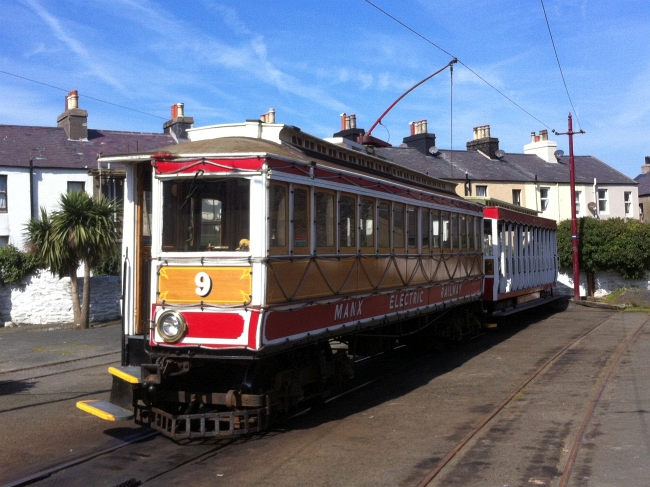 Car No.9 and Trailer No.44 await departure from Ramsey for Derby Castle on the 19th of April 2014, with the 11:40. © Alex Fairlie