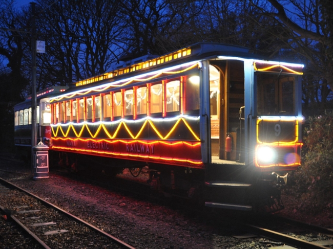 Car No.9 and Trailer No.59 wait to collect the single line staff at Ballabeg during a period of ‘Santa Tram’ operation on the 15th of December 2012. © Andrew Scarffe
