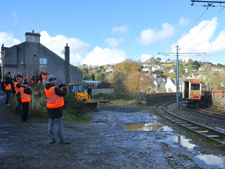 Photographers capture the sunlight glinting off Tunnel Car No.9 exiting Glen Roy Viaduct with a service for Derby Castle. © David Lloyd-Jones