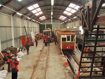 Photographers line up to photograph the rolling stock in Laxey Car Shed. © David Lloyd-Jones