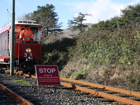 Car No.32 is seen exiting the temporary single line section at Ballaskeig, where the tour reversed. ® Ian Mylroi