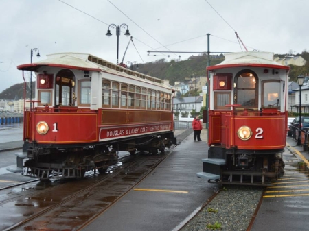 Car No.1 and Car No.2 wait to leave Derby Castle on their parallel run to Groudle. © David Kelly