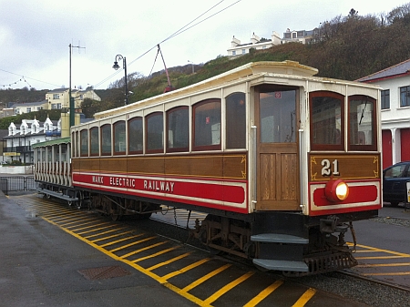 The rare combination of Car No.21 and Trailer No.60 wait to leave Derby Castle with the 09:40 to Ramsey. © Alex Fairlie