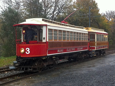‘Car No.3’ and Trailer No.59 paused for a photo-stop at the old Laxey 1896 station. © Alex Fairlie