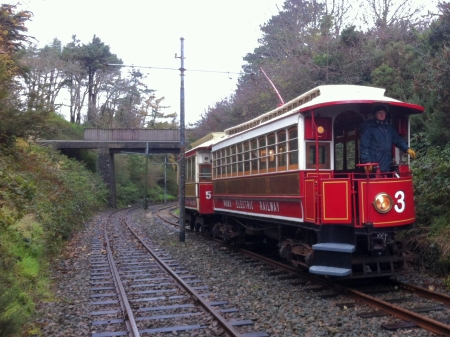 ‘Car No.3’ and Trailer No.59 paused for a photo-stop at Ballagorry Bridge. © Alex Fairlie