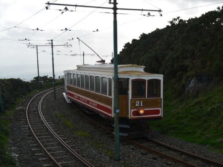 Car No.21 passes the summit of the line at Bulgham head, bound for Ramsey. © David Kelly
