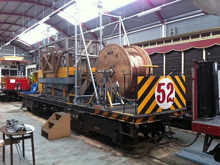 Trailer No.52 sporting new framework additions, inside Laxey Car Shed. © Alex Fairlie