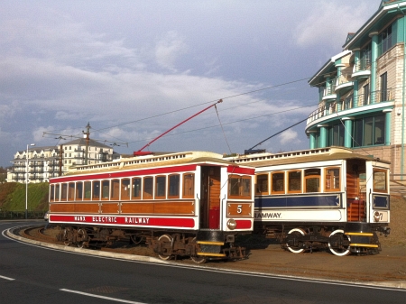 Cars 5 and 7 pose on the curve next to Scania House on the return from Onchan Head. © Website Collection