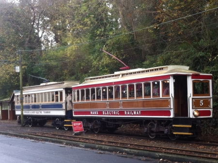 Car No.5 hauling Car No.7 pauses for a photo-stop at Groudle Glen. © Website Collection