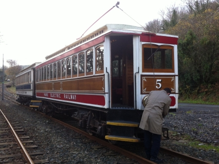At Dhoon Quarry the combination was reversed, with the trolley-pole tied down on Car No.5. © Website Collection