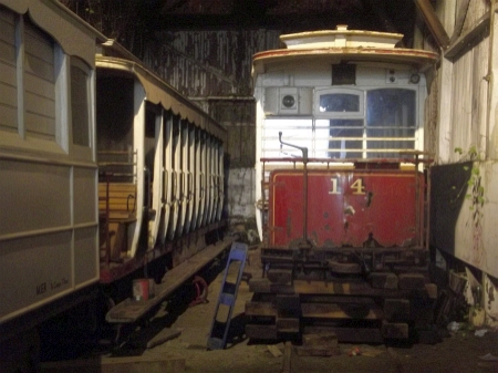 Long stored items of rolling stock inside Ramsey Car Shed, Car No.14 and No.30. © Josh Haworth