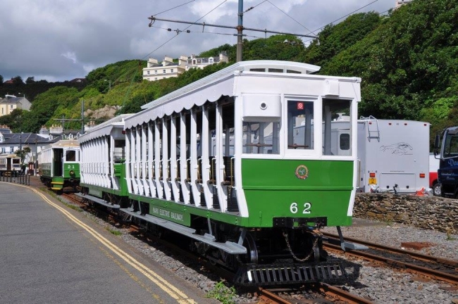 Trailer No.62 returned to passenger traffic following a full truck overhaul, axle renewal and a repaint into the M.E.R Nationalised Green livery on the 4th of June 2017, seen here behind Car No.32 waiting to shunt at Derby Castle. © Andrew Scarffe