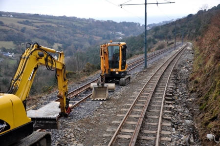 Looking back down the line towards Laxey. The down line is being used to access the work sites. The up line will be used when the service recommences. © Andrew Scarffe