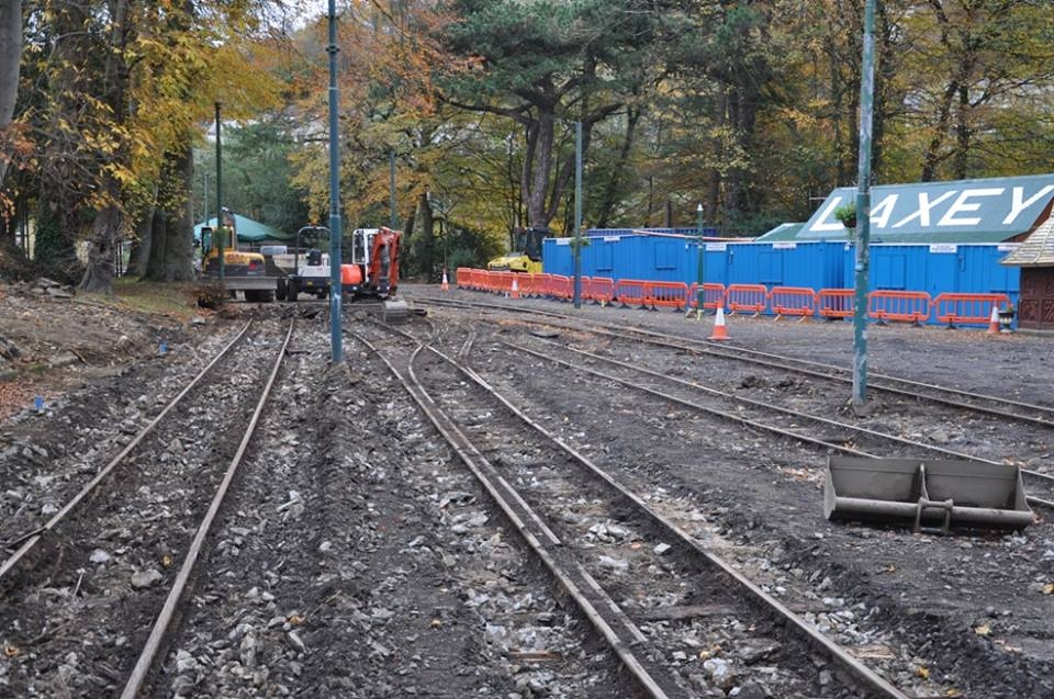 The overhead wires were taken down and part of the surface dressing removed to reveal the sleepers and rails. © Andrew Scarffe