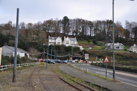 To allow contractors to work on the track and install the new run round points at Dumbells Row, the overhead wire has been removed as far as Level Crossing No.3, and for a couple of pole lengths on the Snaefell line.