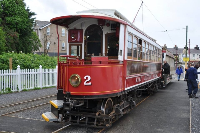 Car No.2 and Trailer No.47 wait to depart Ramsey Parsonage Road with a southbound working to Derby Castle. © Andrew Scarffe