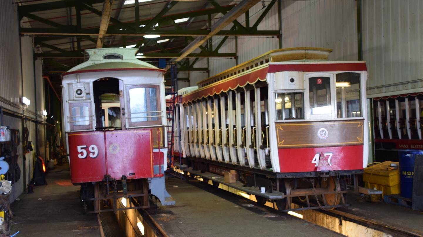 Trailers 59 and 47 on roads 1 and 2, Preliminary work being carried out to trailer 59 which it is hoped will be returned to service next year. Trailer 47 undergoing a winter service which will including repainting of all the white woodwork, the roof, floor and running boards. © Andrew Scarffe