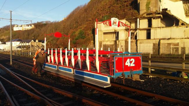 Horse Tram No.42 being brought up to the Car Sheds from Derby Castle. © Stephen Hall