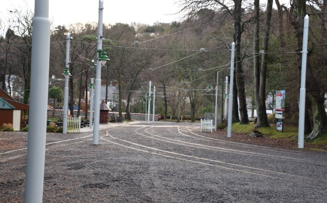 Pole painting in Laxey Station. Grey undercoat on, green topcoat to follow. © Andrew Scarffe