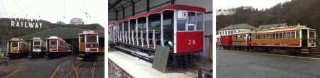 The tour began at 09:00 at Derby Castle with two cars available for participants to travel in: Car No.5 and Car No.7, both cars sporting different liveries: Car No.5 in the traditional Red, White and Teak, and Car No.7 in the ‘original’ colours of Blue and White. A short parallel run to Onchan Head then ensued, with Car No.5 on the seaside, and Car No.7 on the landside. Photo-stops on the return were undertaken at Onchan Head, the Scania House Curve, and outside Port Jack, with the cars arriving back at Derby Castle for 09:40.