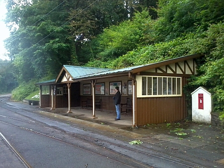 Notes: The first terminus of the M.E.R, Groudle Glen is blessed with a large wooden waiting shelter and postbox. The station is also the interchange for the Groudle Glen Railway, which runs during the summer months from Lhen Coan to the cliffs at Sea Lion Rocks.