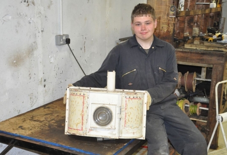 The Douglas end lampbox following removal from the bulkhead of Car 14. Partial removal of the paint has revealed the original colour and fairly simple red lining out. A later repaint had more intricate lining. © Andrew Scarffe
