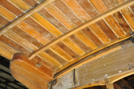 Douglas end platform canopy. Removing the white paint from between the timberwork is proving to be a very time consuming job! © Andrew Scarffe