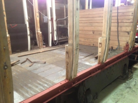 Red oxide primer has been applied to the underframe on the land side of the Car, following remedial works to this area. The underframe itself, in common with the rest of the vehicle, is in surprisingly good condition. © David Martin