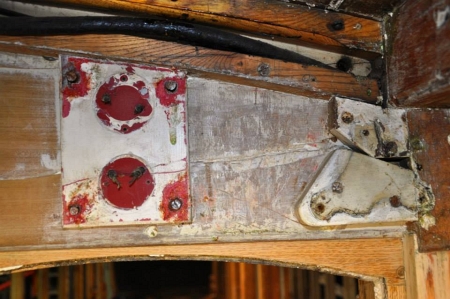 Work carried out to Car 14’s Douglas end bulkhead. On the left is the mounting block for the interior light circuits and to the right is the mounting for the bell. Originally, the bell was on the left of the bulkhead but very soon after delivery was moved to the right hand side. © Andrew Scarffe