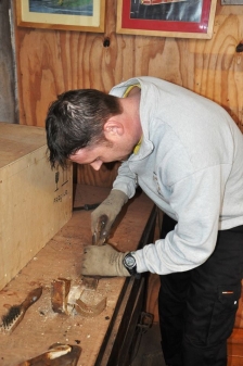 Removing paint from the seat brackets and supports. © Andrew Scarffe